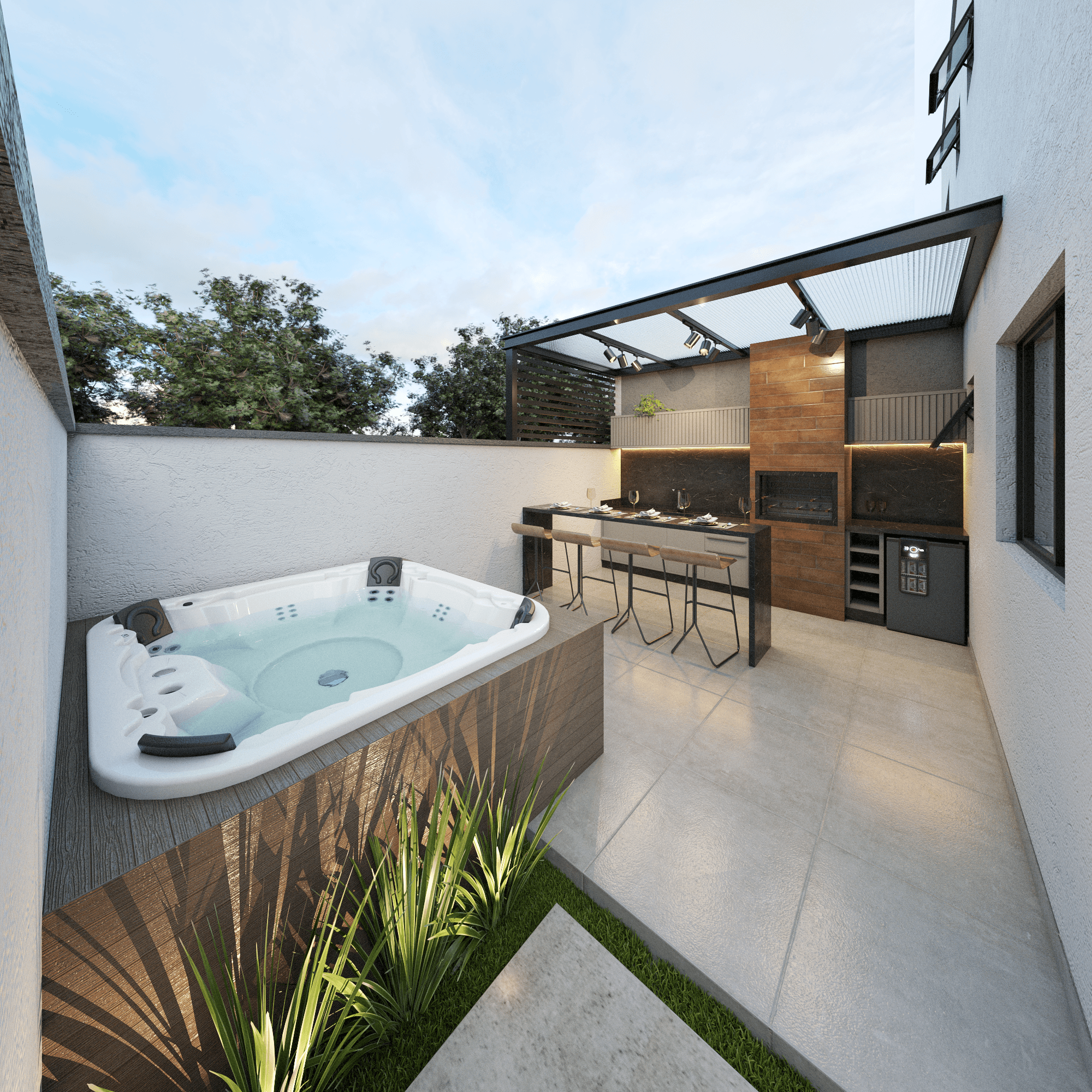 ▫️ Sacada com churrasqueira e ponto para pia