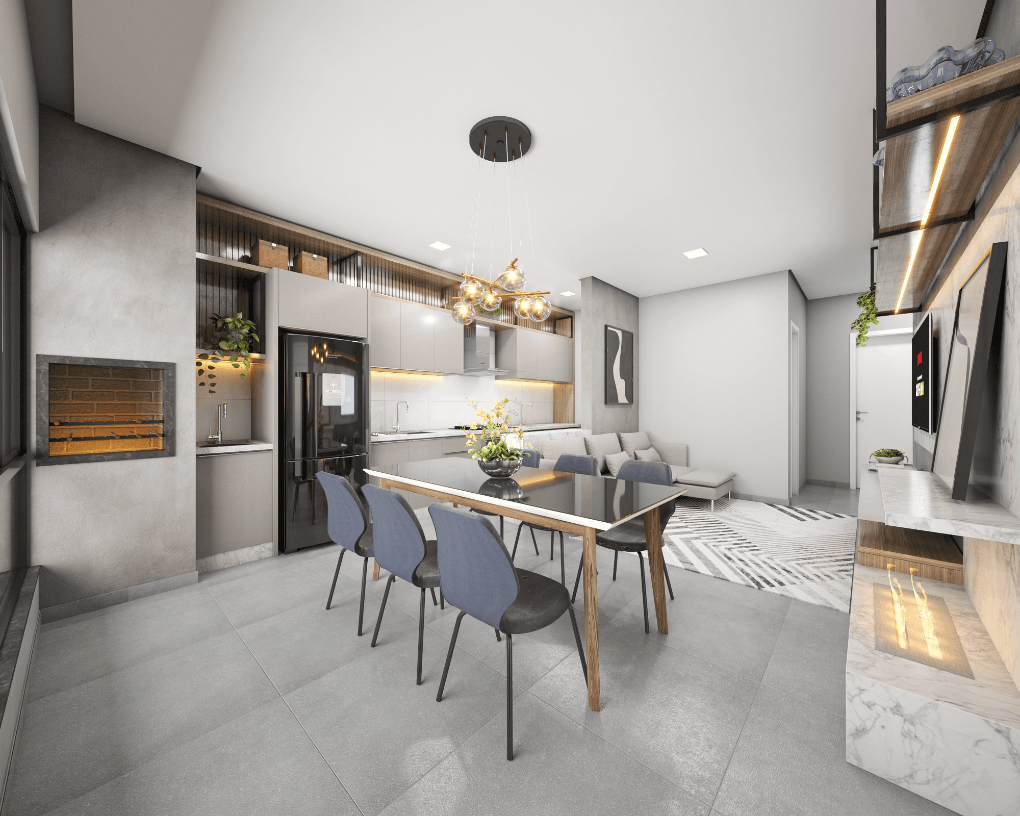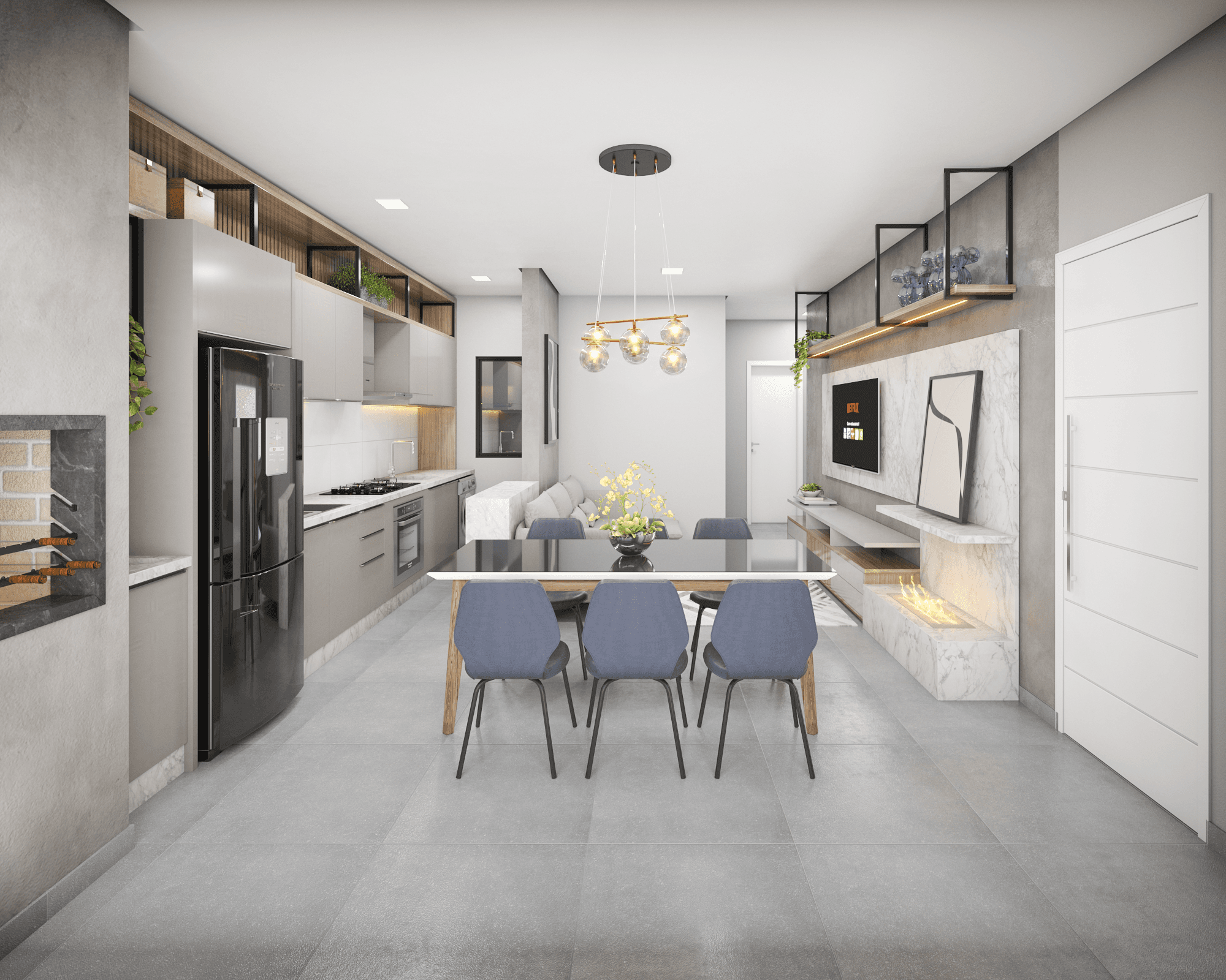 ▫️ 3 quartos (sendo 1 suíte), cozinha, sala de jantar e estar, churrasqueira, lavabo, banheiro social