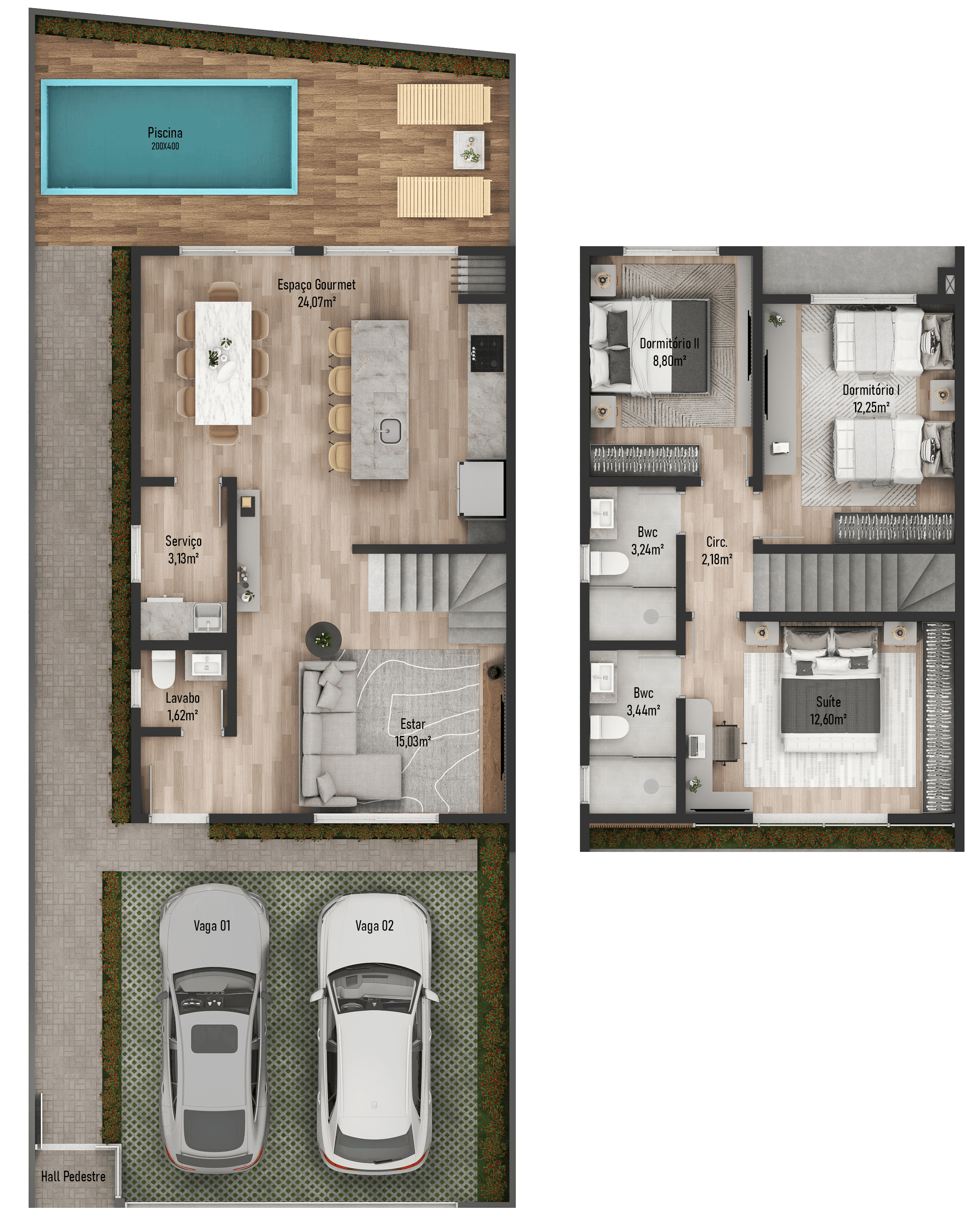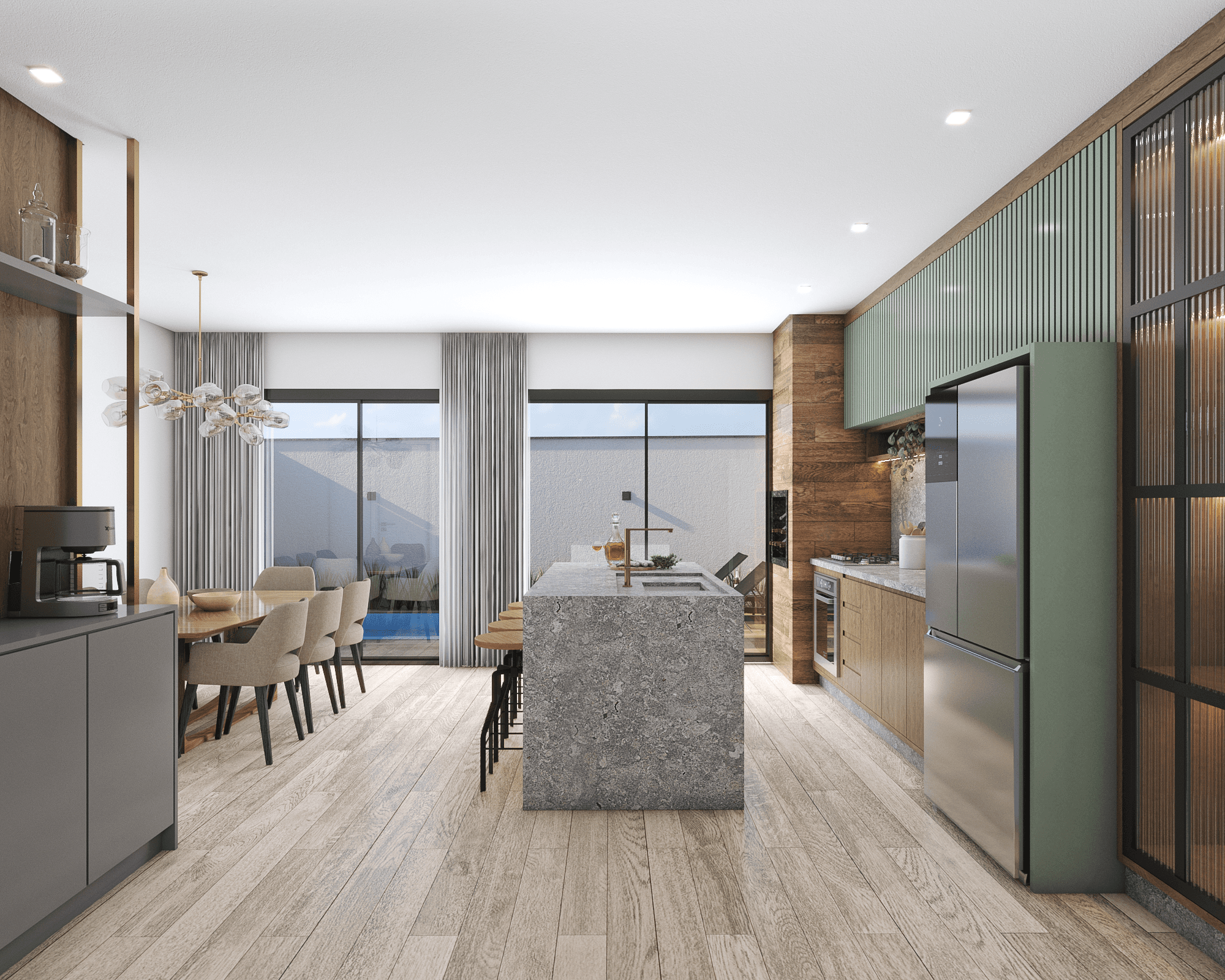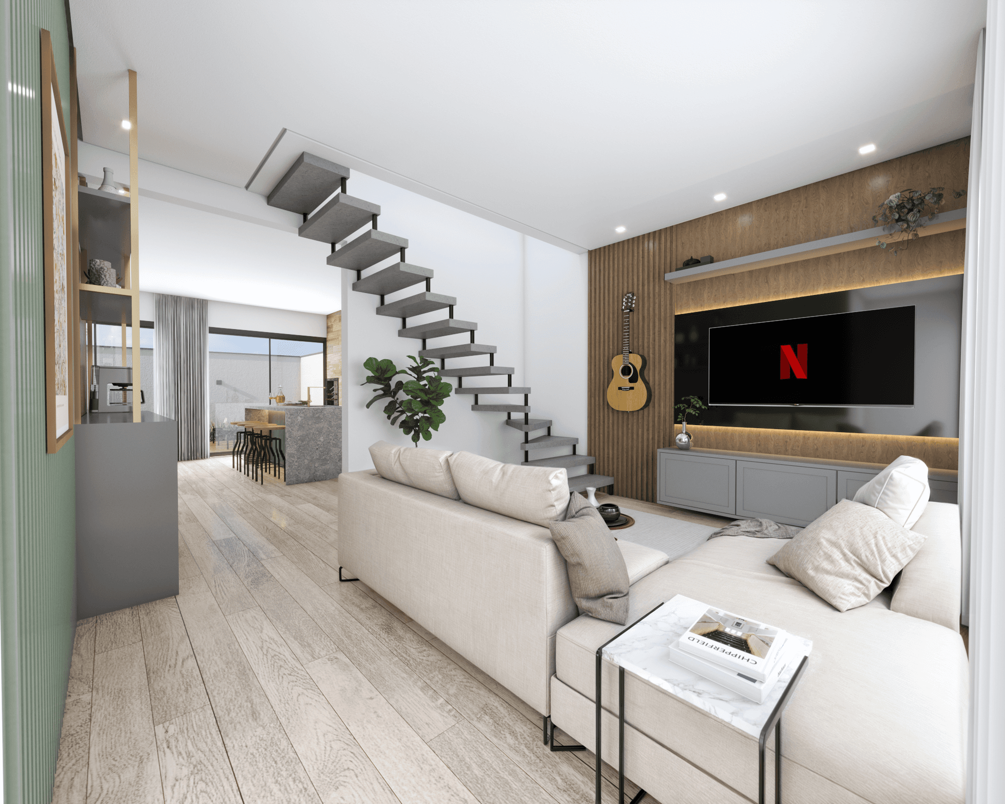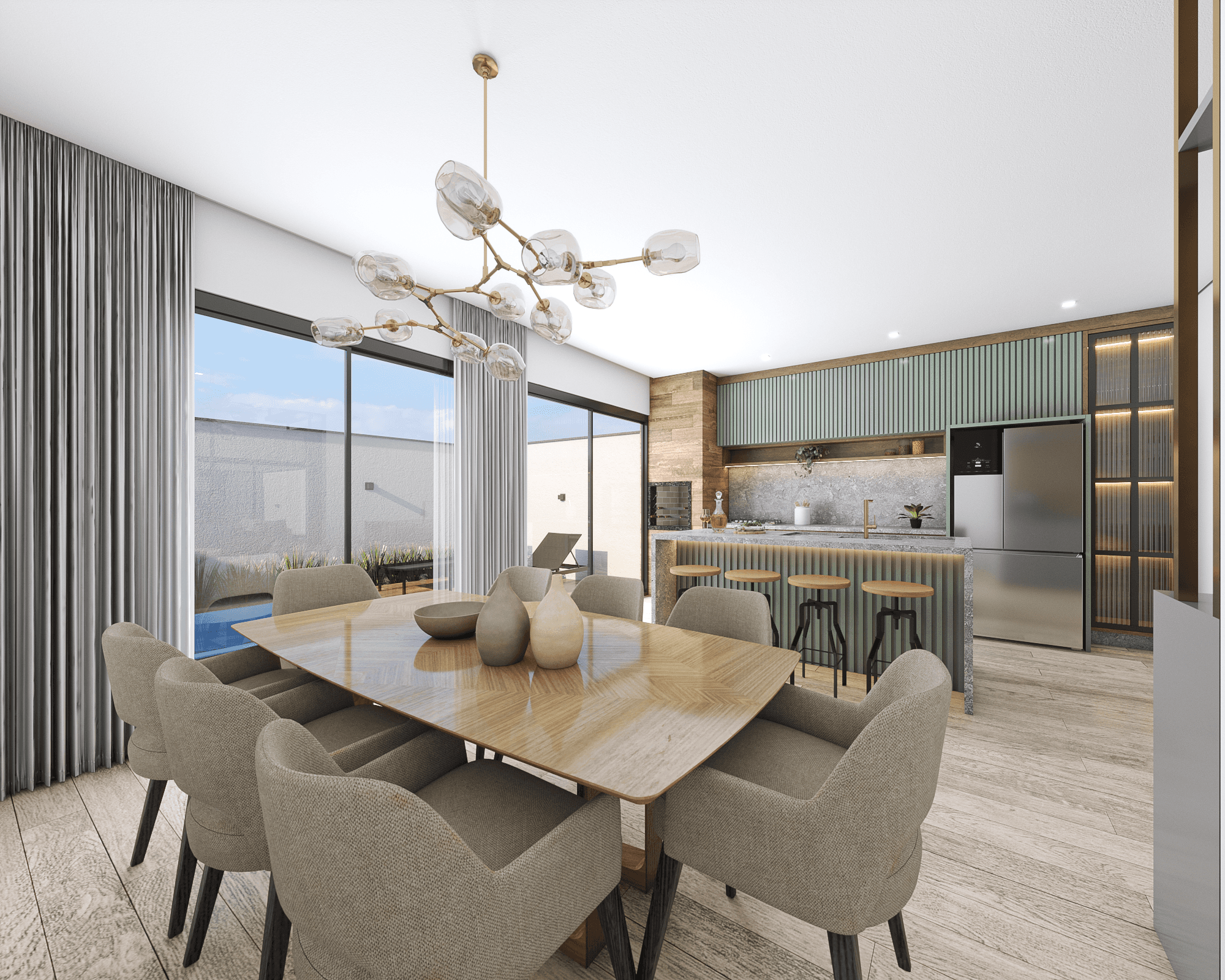 ▫️ 3 quartos (sendo 1 suíte), cozinha, sala de jantar e estar, churrasqueira, lavabo, banheiro social e área de serviço