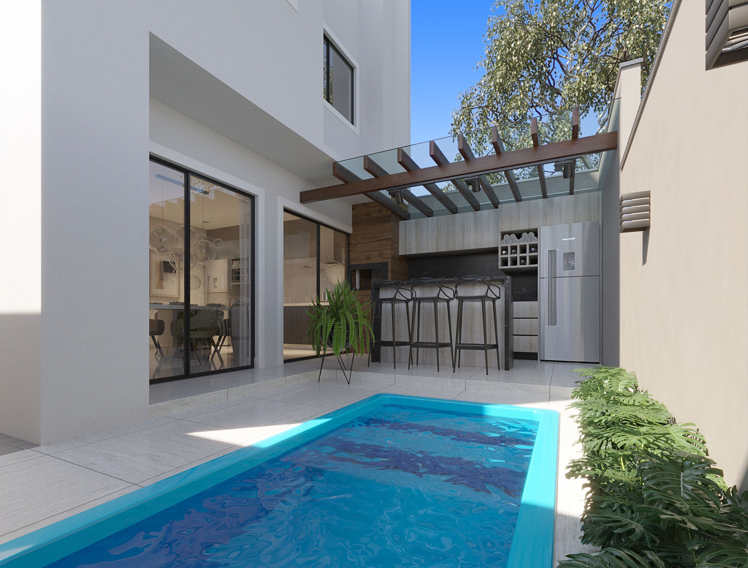 ▫️ 3 quartos (sendo 1 suíte), cozinha, sala de jantar e estar, churrasqueira, lavabo, banheiro social
