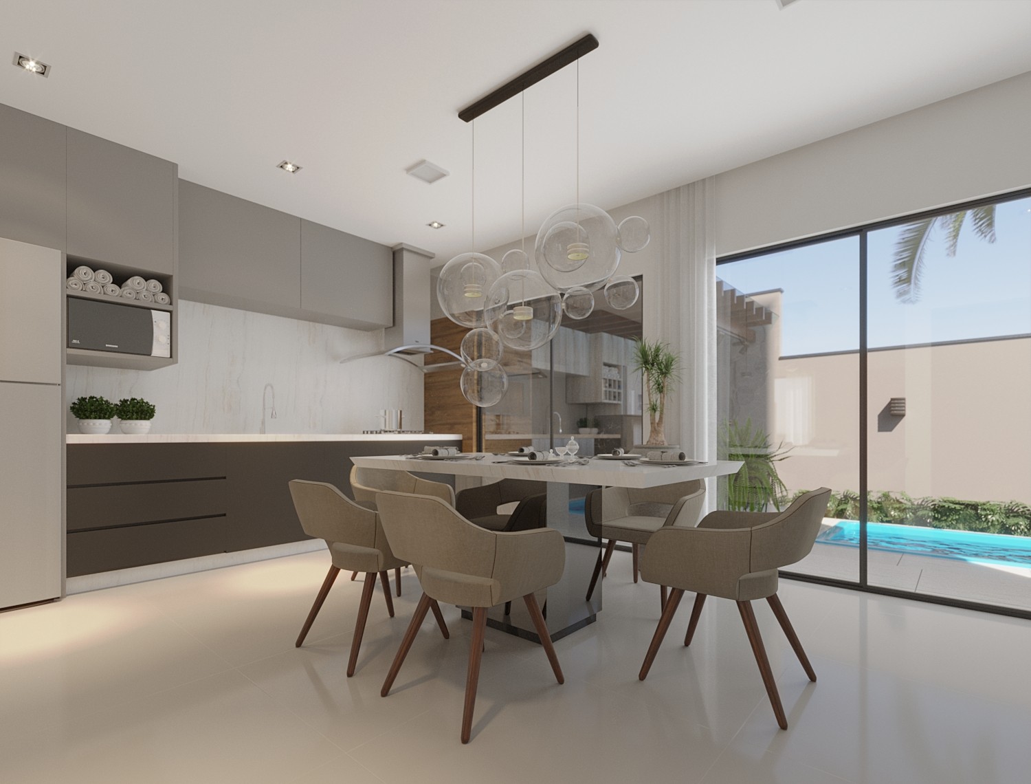 ▫️ 3 quartos (sendo 1 suíte), cozinha, sala de jantar e estar, churrasqueira, lavabo, banheiro social e área de serviço
